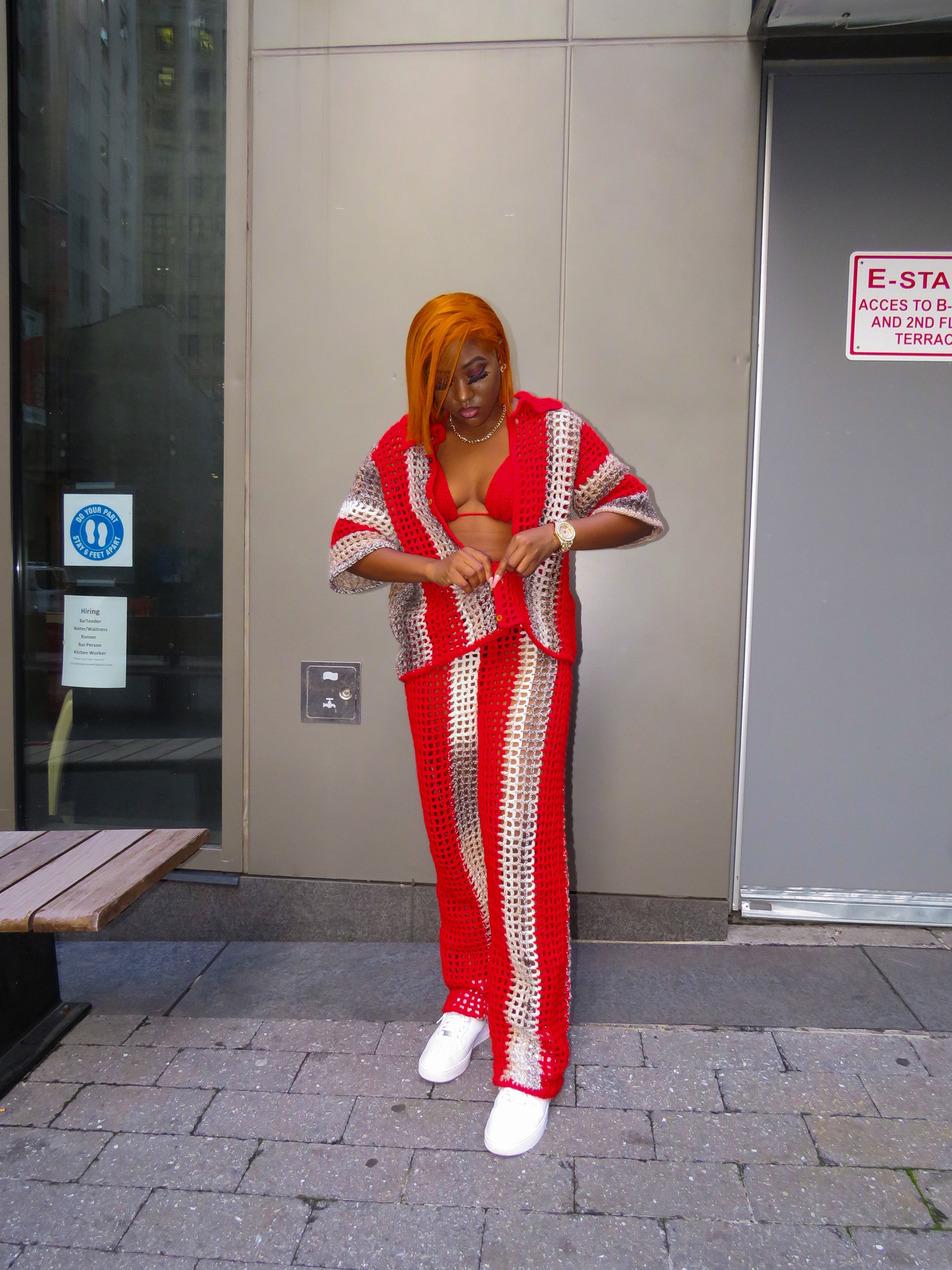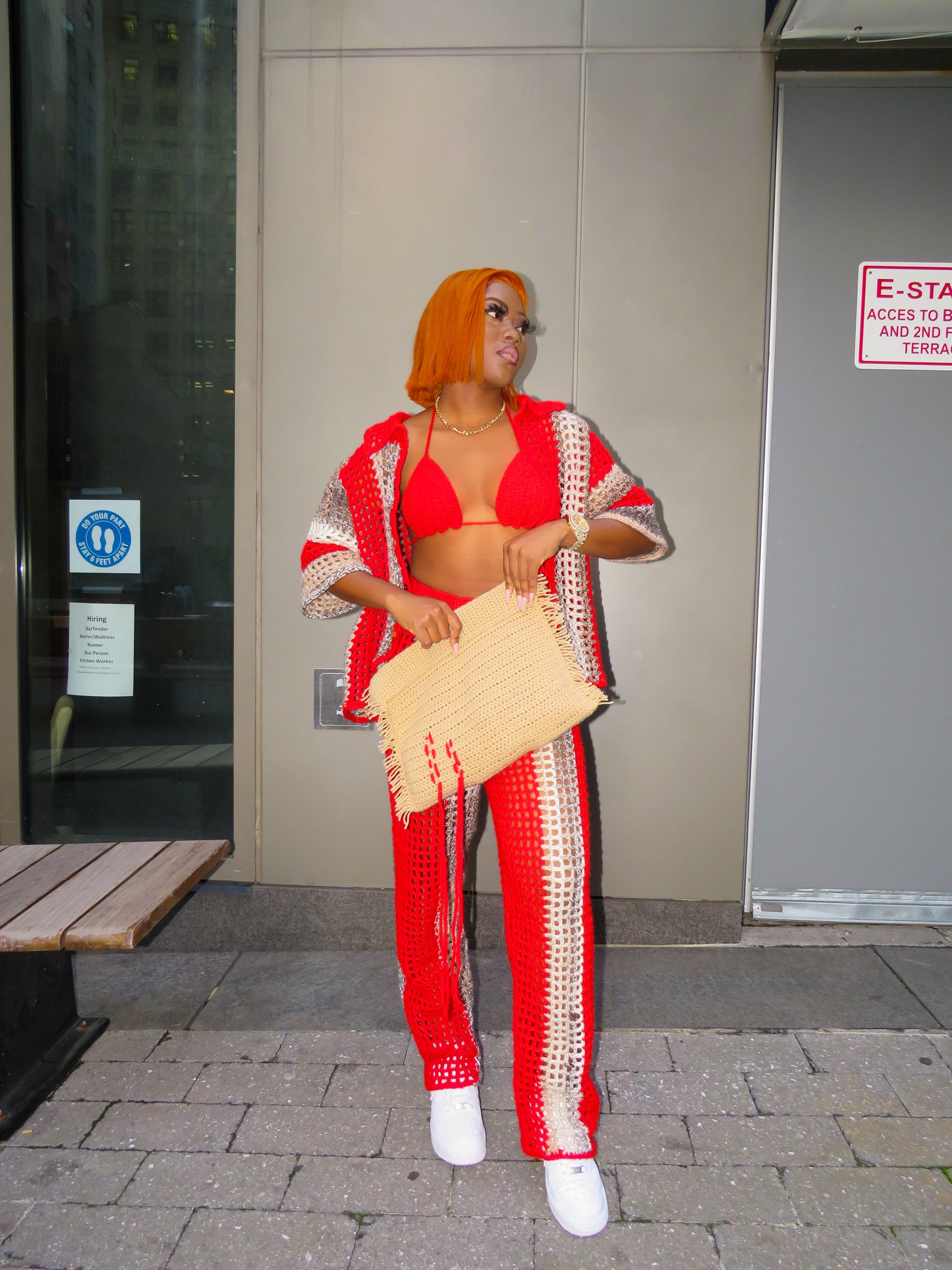 Jarion is an open stitch Lightweight crocheted wide leg Pants. It is perfectly paired as a showstopper to the Jarion Shirt.