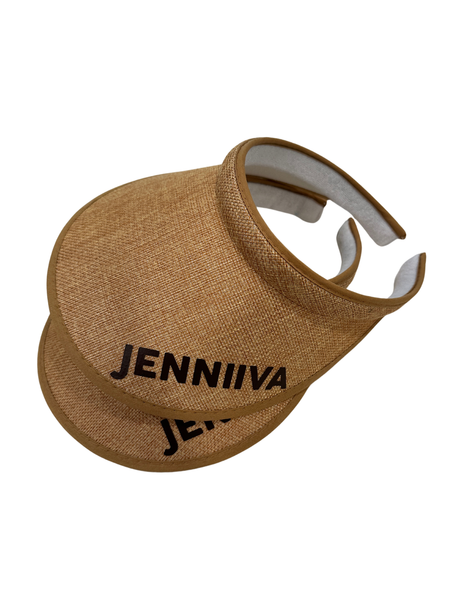 The Ocean visor is an elegant and unique creation offering a new take on straw visors. Crafted in straw, it showcases the Jenniiva signature on the front. It can be adjusted to fit at the back. Style with the Jenniiva Scarf as a Mitzah for a non stop stare.