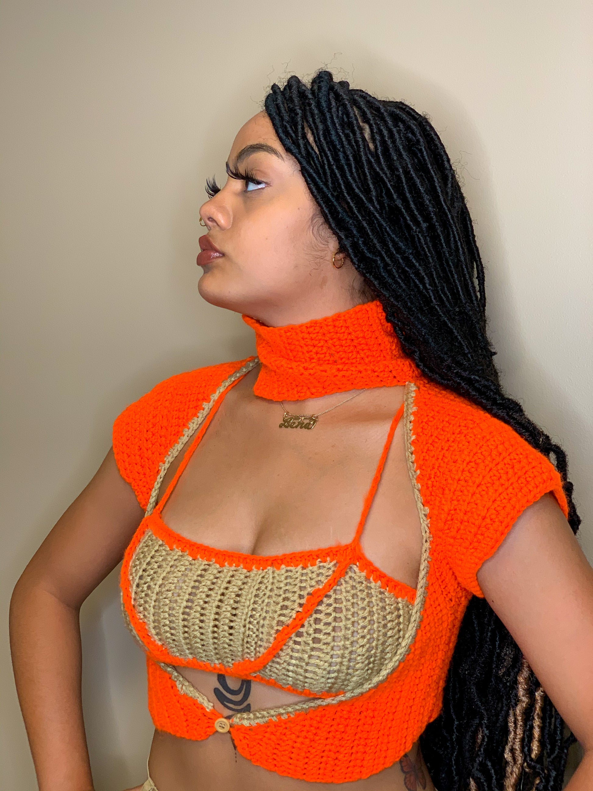 Division Two Piece Top cuz you leave them speechless. This top comes in a stretch cut out construction, Embrace the sunlight hour in this cutout lace-up bra top that has a vegan leather construction, and a high neckline.